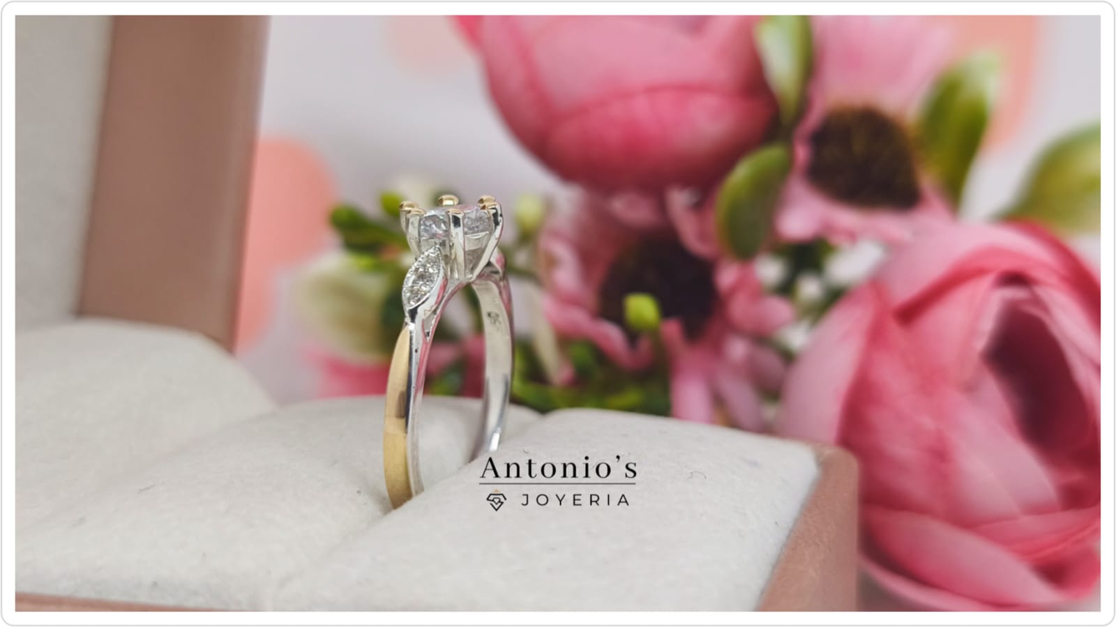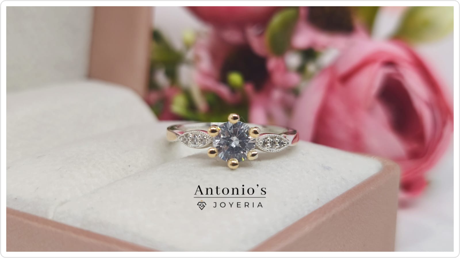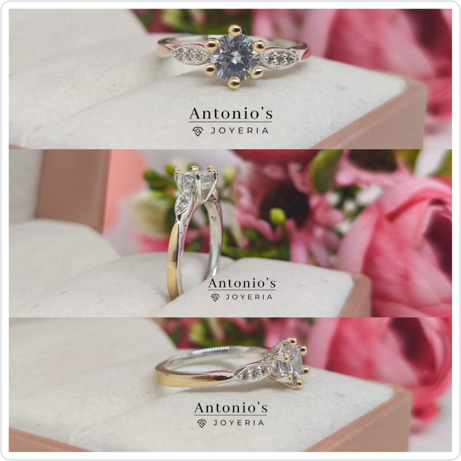 Sortija elaborada en plata 950 con lámina de oro 18k completo e incrustaciones de piedra circón